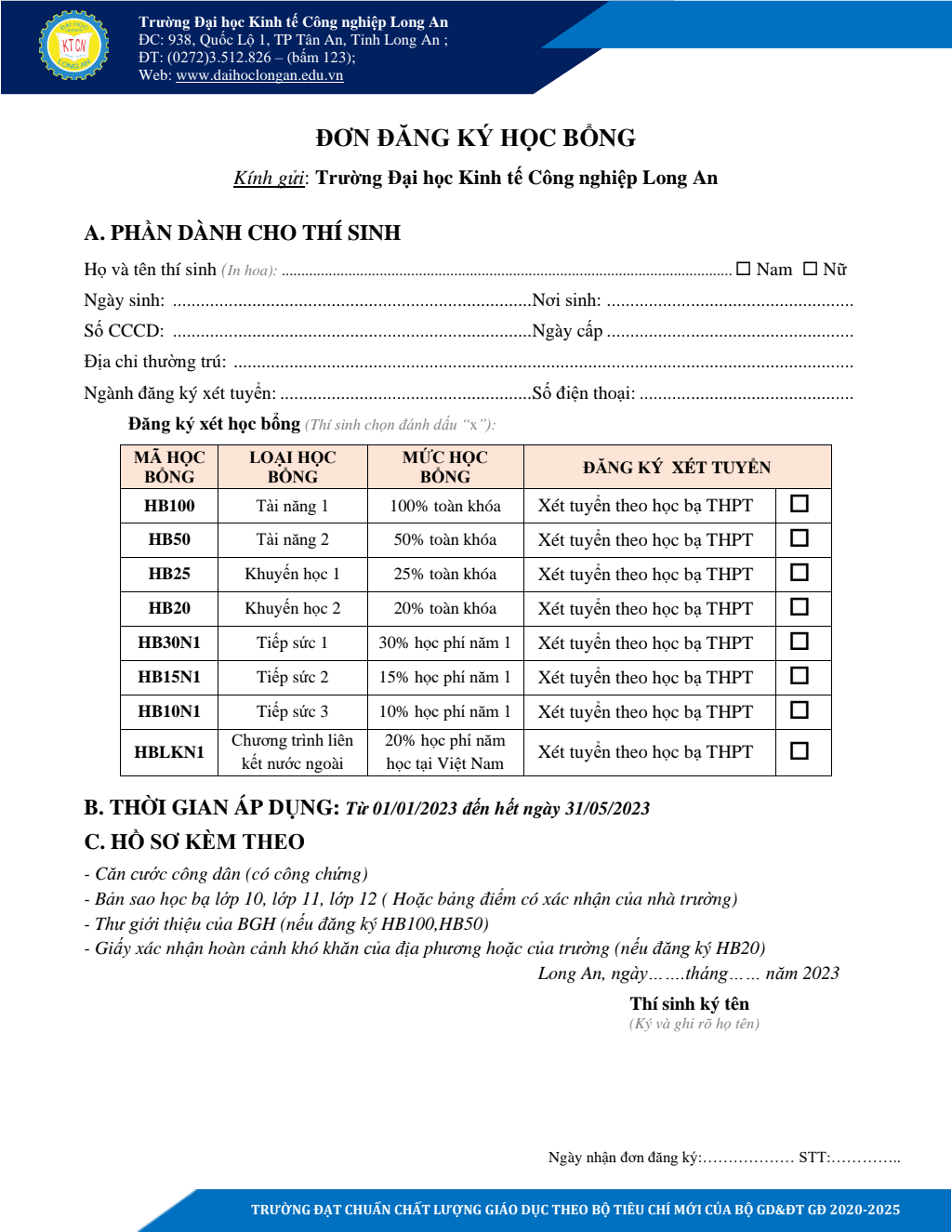 Dự tuyển Học bổng năm 2020 - Trường Đại học Kinh tế Công nghiệp Long An